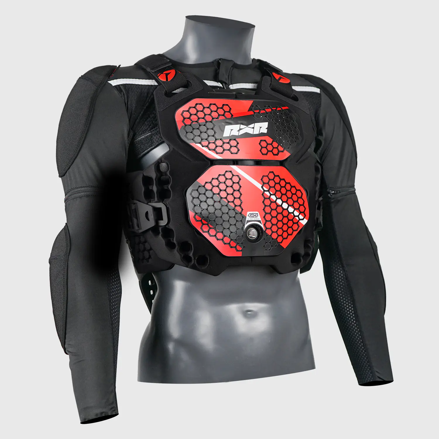 Chaque détail a été travaillé avec soin : ventilation optimisée, sangles ajustables, design moderne et positionnement ergonomique. Pour les pilotes souhaitant une protection maximale, les pads latéraux R2O sont disponibles en option pour renforcer la zone des côtes.