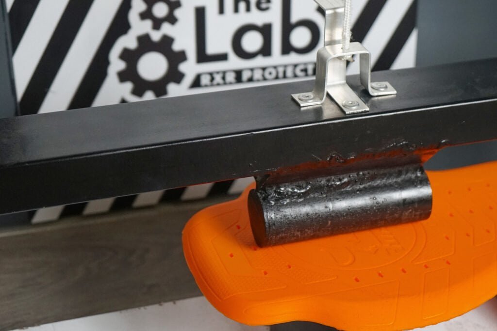 Para ilustrar nuestro punto, hemos realizado un comparativo de soluciones de protección simple pero revelador. Hemos probado nuestra protección dorsal R2O, una mezcla de espuma no newtoniana y nuestra tecnología Air Shock Absorber, frente a la protección dorsal líder en el mercado utilizada en casi todas las marcas de protecciones corporales actuales, incluidos los AIRBAGS con desencadenamiento. Sin esta protección, estos sistemas no pasarían las pruebas de impacto – ¡es una realidad!